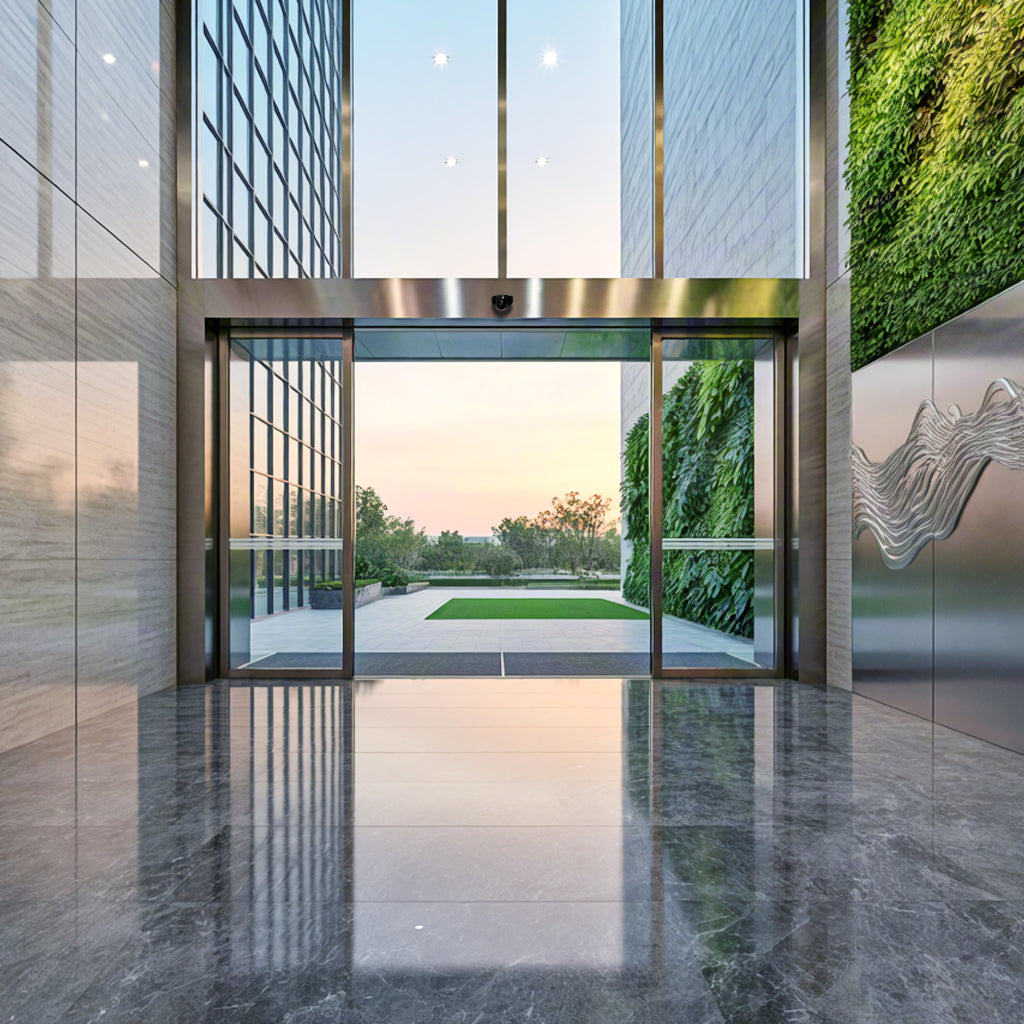 Automatic doors integrate intelligent sensing, anti-pinch safety, silent operation, and energy efficiency, with customizable opening/closing modes to suit diverse scenarios, enhancing traffic flow and architectural modernity.